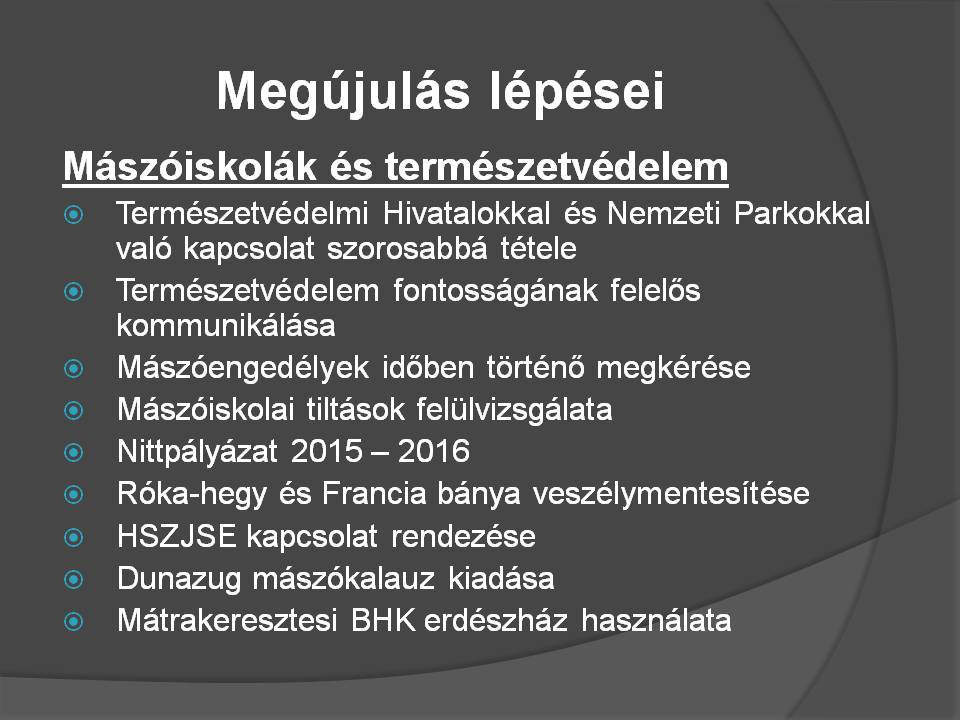 Ezen felül megismerkedhettünk az egyesület rövid történetével, a Duna – Ipoly Nemzeti park és a mászók kapcsolatával illetve Koncz Ákos előadásában a hegymászás és a nyugati kultúra egymásra gyakorolt hatásaival.